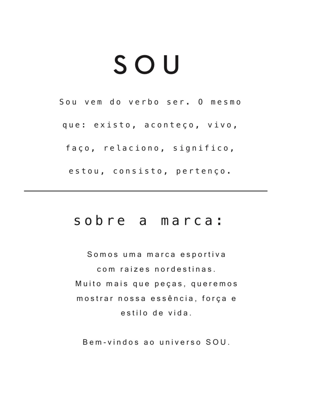 Aqui, cada detalhe importa, porque queremos que você não só vista nossa marca, mas que se sinta parte de algo maior. Queremos que você SEJA – seja forte, seja autêntico, seja você. Seja SOU.